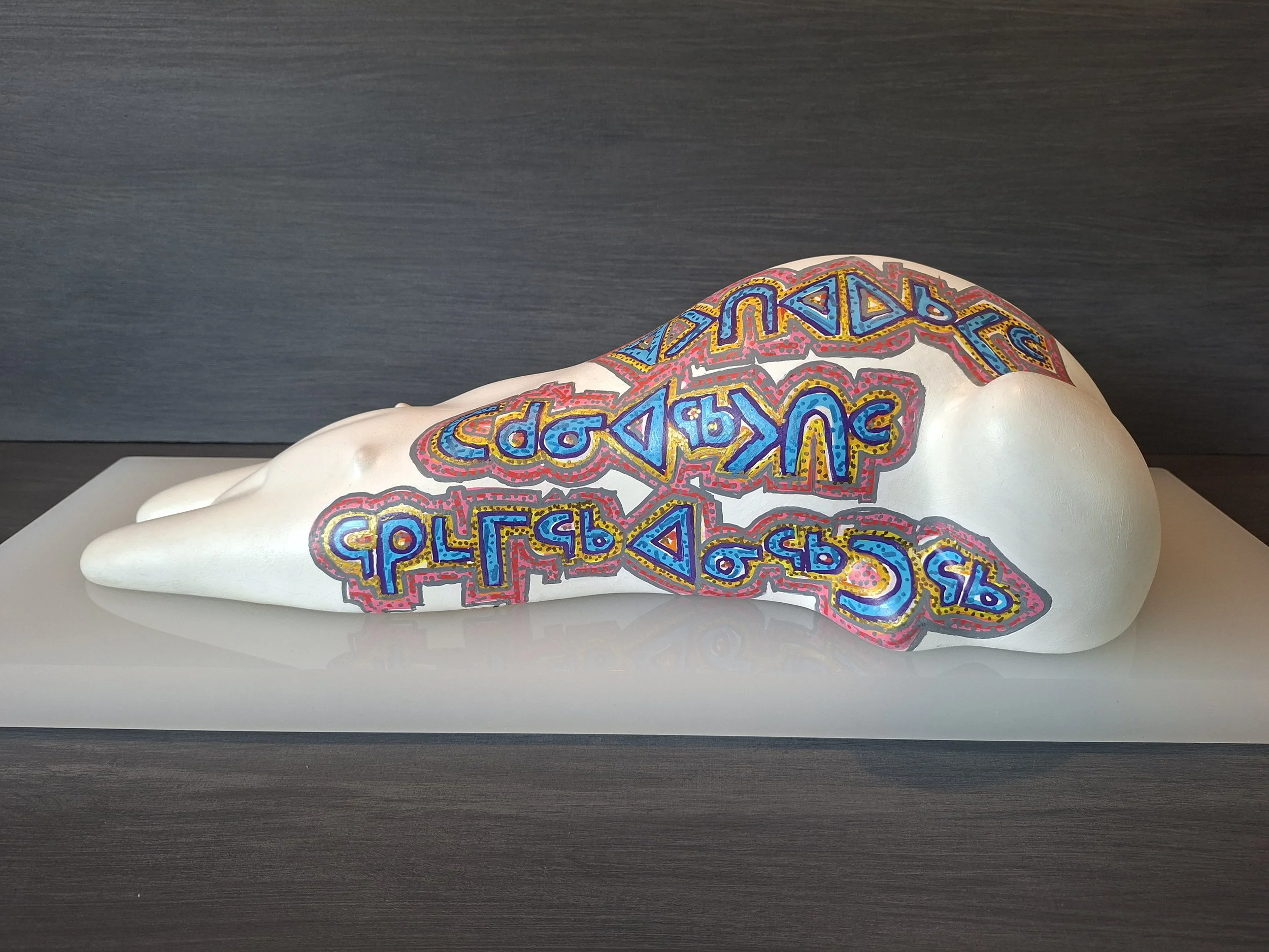 Back when I first started to show my work in 1988, I only created wooden pieces. When I rebooted my artistic career in ’24, I wanted to explore other mediums, such as sculpting in clay and having these pieces cast in acrylic and usually finishing them in a single colour. These pieces formed my ‘Polar Yoga’ series.